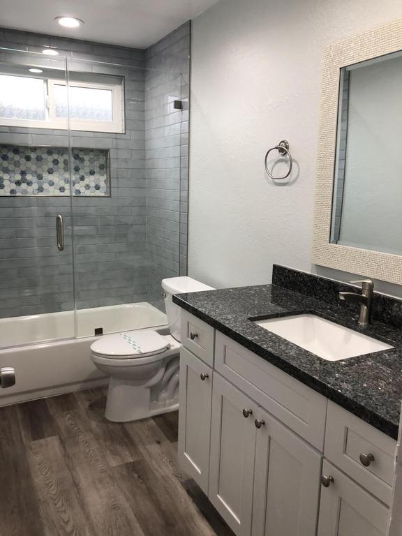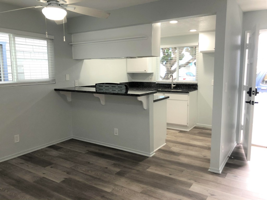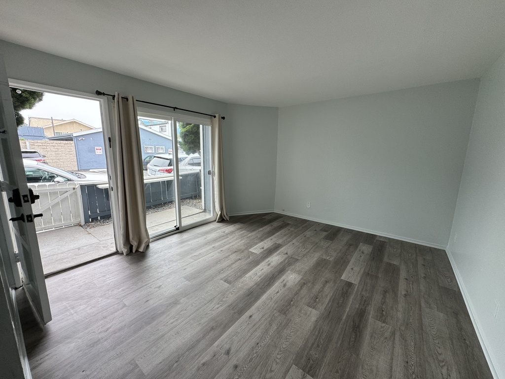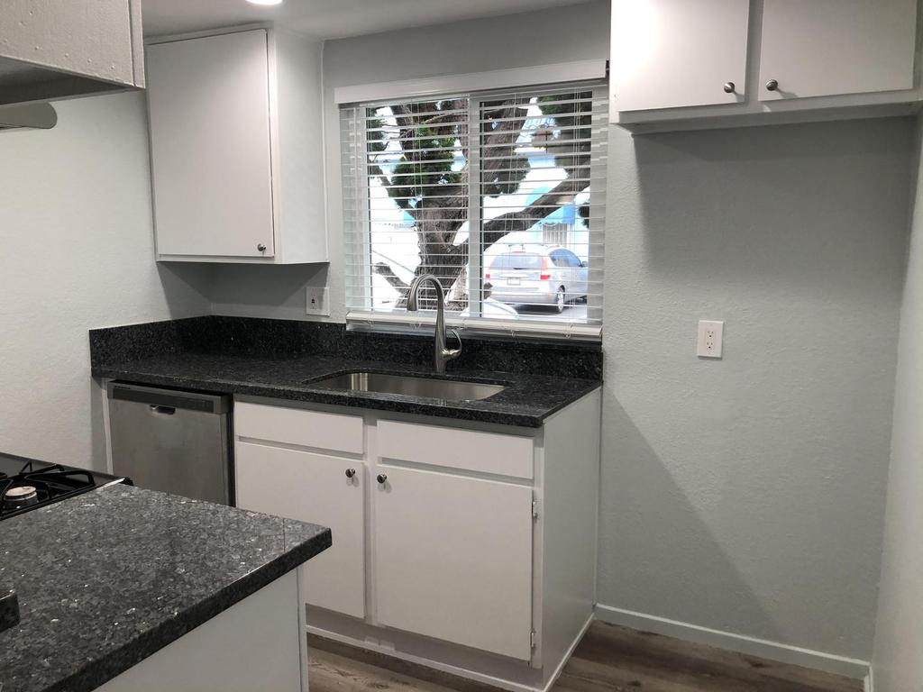 LIVE AT THE BEACH! The beautifully remodeled Newport Beach condo is only 1 block from the sand! 2b/2b downstairs unit of a duplex. Enjoy the ocean energy and carefree living that the beach offers with just a short walk to the sand. This coastal beauty was recently updated. The flooring is the gray distressed wood-like laminate planks that is perfect for the beach, freshly painted walls and ceiling as well as the entire outside and all new double paned windows. The kitchen includes granite bar countertop, custom tile flooring, white cabinets, appliances such as a gas range, microwave, dishwasher, new farmhouse sink and stainless steel faucet and refrigerator hookup. The dining room is just outside the kitchen with a new ceiling fan light. The living room opens up to the dining area with a gas fireplace and a new sliding glass door to the front patio . The bathrooms are beautiful with custom tile work in the showers and glass shower doors, new single sink vanities and new water conserving faucets and toilets. The bedrooms include a master suite with a wall closet and direct access to the 1 car garage and 1 carport parking. The 2nd bedroom includes a wall closet and the guest bathroom is located across the hall. It's nestled just outside the Newport Shores community. This Gem will not last long! Taking applications now for a Feb 1st Move In.