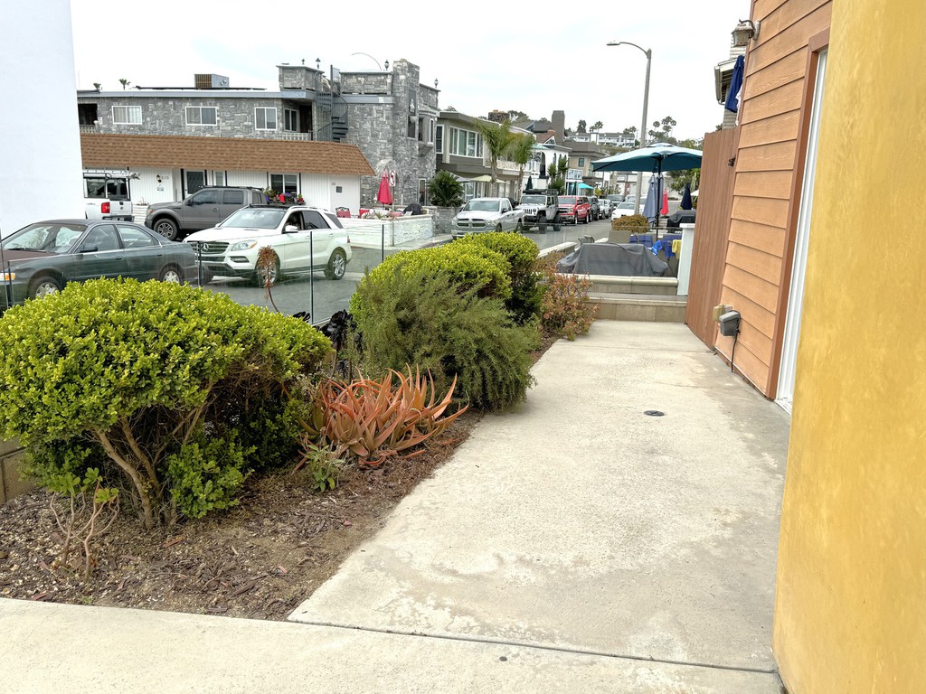 LIVE AT THE BEACH! This is the lower level unit - situated directly across the front row homes on the sand! Sitting on a large corner lot, this home has a charming design with two bedrooms, two full bathrooms, living room with dining area, an upgraded kitchen with breakfast bar plus AIR CONDITIONING. The living room opens to a large patio with a built-in fire-pit - perfect for entertaining. There's an after-beach shower located just inside the front secuirty gate. This spectacular home is pre-wired for a security alarm and comes with A 2 CAR GARAGE PARKING.