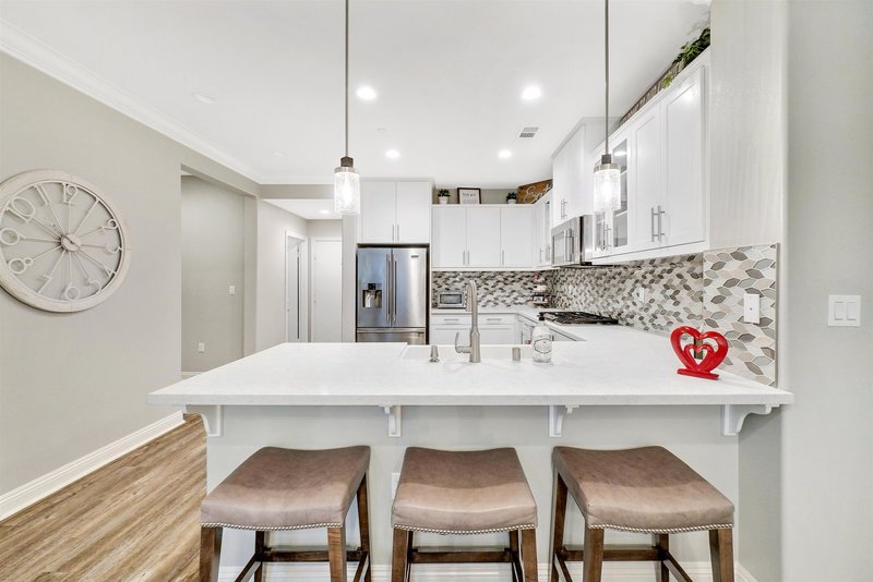 This beautiful 3 bedroom, 2.5 bath townhome is a rare find in the New Auburn Heights community. Built in 2018 and over 2000 sq ft it comes with substantial upgrades. The upgrades include gorgeous laminate flooring, gourmet kitchen with white modern cabinets, quartz countertops with custom back splash, upgraded stainless steel appliances, wine refrigerator, breakfast bar, coffee bar and walk-in pantry. The home has a spacious feel with vaulted ceilings and a large open great room and dining room. Tasteful custom two-toned neutral paint/trim with upgraded baseboards, crown molding and wood shutters throughout. Upgraded handrail and carpet at the stairs, as well as two of the upstairs bedrooms. The laundry room (includes washer/dryer) is conveniently located upstairs in a laundry room. The bathrooms have upgraded flooring with marble vanity and a soaking tub in the master bathroom. The master bedroom has an upgraded closet organizers and a beautiful brick accent wall. A large loft located at the top of the stairs can be used for many different options such as an additional living area, exercise room, gaming room, office, etc. Both the Living room and the loft have in-ceiling surround sound speakers as well as TV mounts ready for TV hookup. The 2 car direct access garage has a tankless water heater, an EV Charging wall plug, overhead storage and epoxy flooring. Appliances are included: Stainless steel refrigerator, front load washer and dryer, dishwasher, wine fridge and gas stove. This beauty won’t last long. A MUST SEE!
