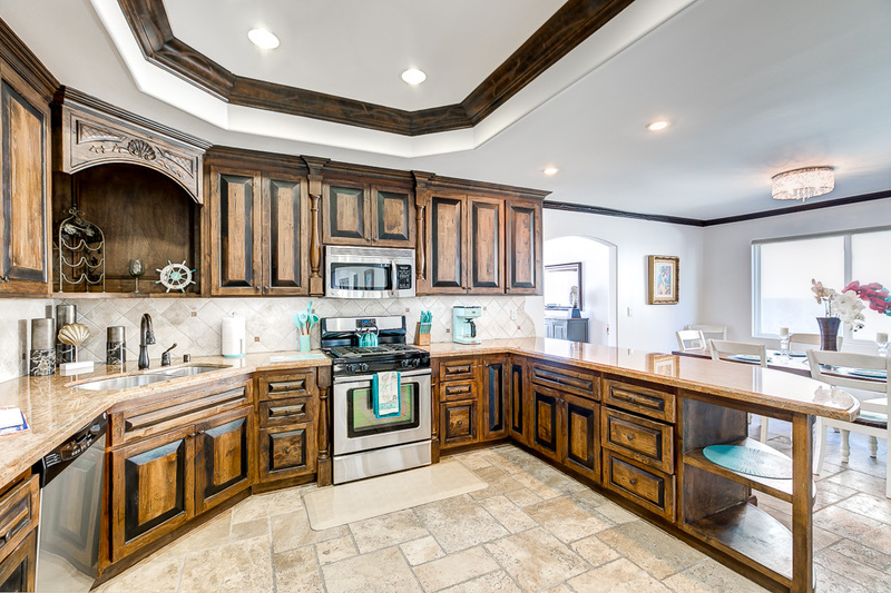 The Grand Treasure was beautifully remodeled in 2010 and is tastefully decorated with a relaxing beach theme. The condo of 1580 sq ft has vaulted ceilings with canned lighting, highlighted with dark chocolate crown molding and baseboards accenting the beautiful travertine tile floors throughout the house. A custom gourmet kitchen that is fully equipped for cooking and entertaining. NEW central Air Conditioning for added comfort during the summer. The home is stocked as if a 5 star resort hotel with all the amenities to make your vacation comfortable and convenient.