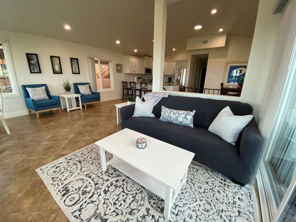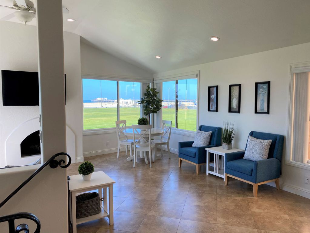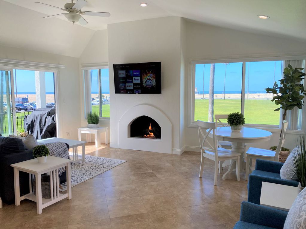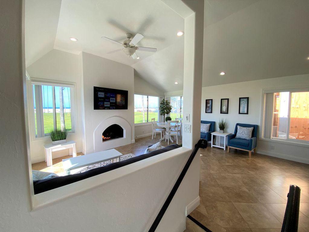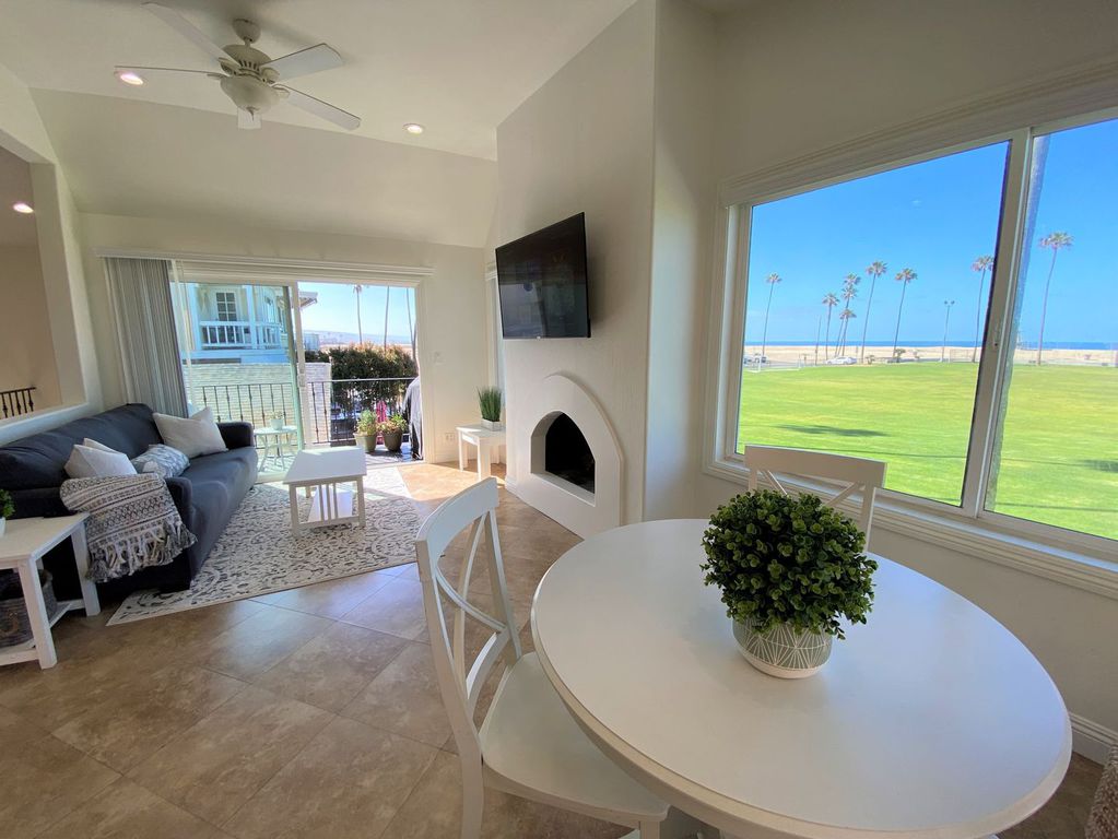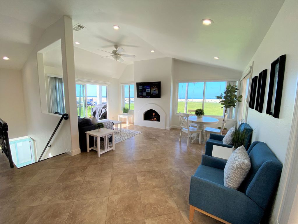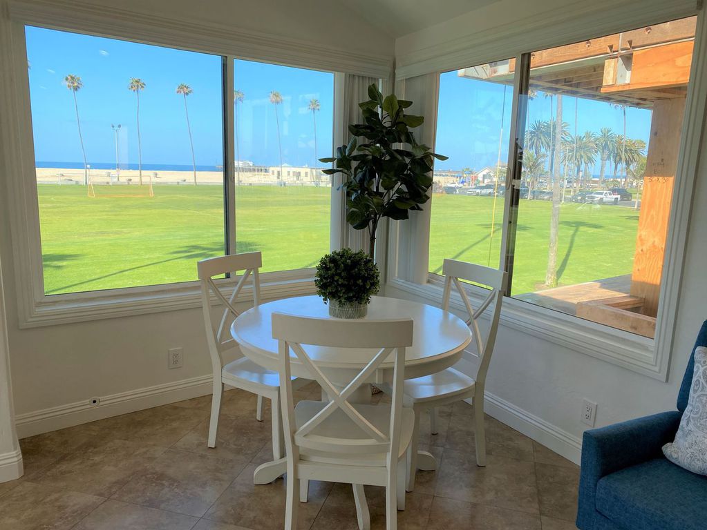 Welcome! This beautiful oceanfront beach home is truly Newport's Treasure. An upstairs 3b/2b condo overlooking the grassy Balboa Park with panoramic view of the ocean and Balboa Pier. Enjoy the ocean breezes and views from the front balcony or Relax on the Beach. The home is beach friendly with tile flooring throughout with the entire house. 3 Bedroom/2 bath that will sleep 8 comfortably. NEW central Air Conditioning just in time for the summer!