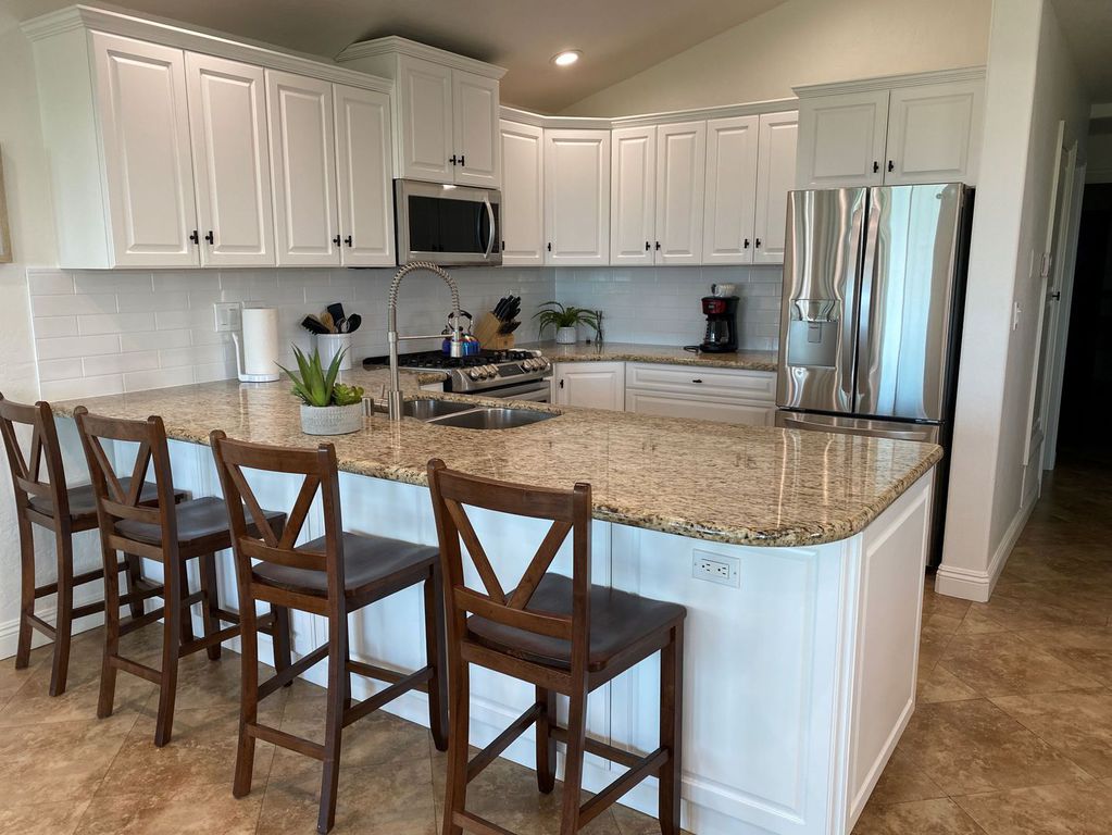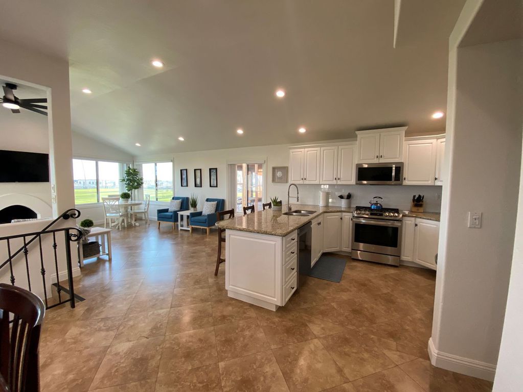 Comfortable Sofa, 55” Roku Smart TV with Hulu live stream, reading books, Wifi Internet and board games. Beautiful tile floors throughout the house, large fireplace, vaulted ceilings and