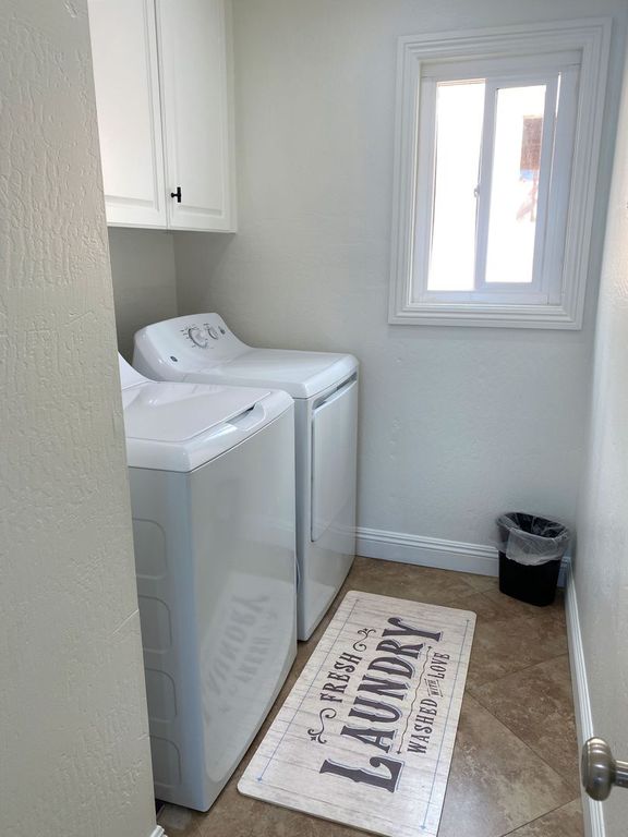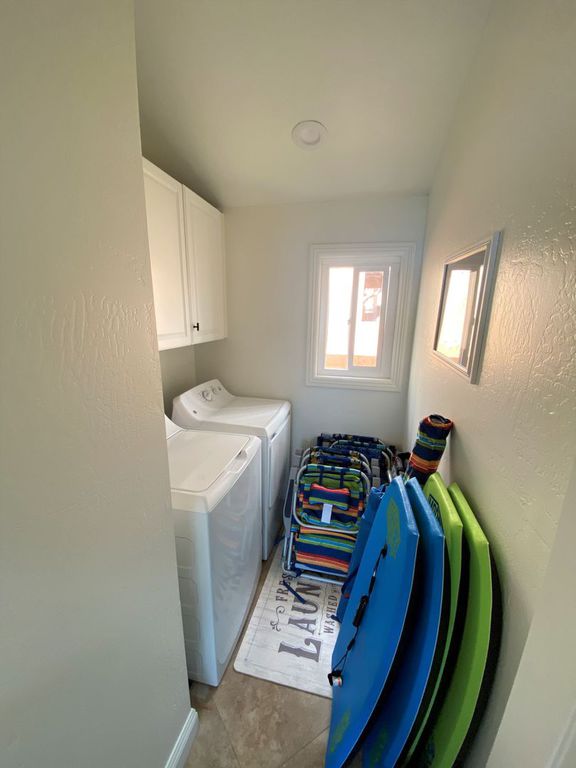 Equipped with washer and dryer. Iron and Ironing Board. Laundry baskets