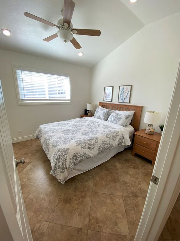 1st GUEST BEDROOM: Furnished with queen bed, nightstand and mirrored wall closet