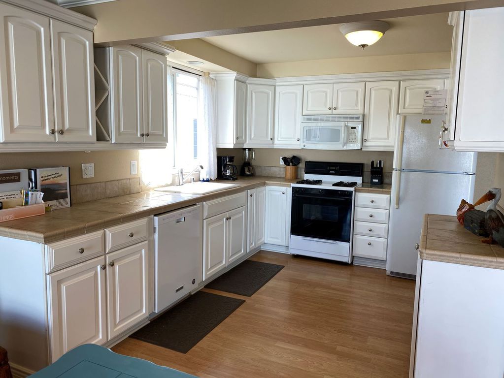 KITCHEN: Open floor plan that opens to the dining room and living room. Kitchen is fully furnished to meet all your cooking and entertaining needs. Including but not limited to: Place settings for 8, Full set of Pots/Pan, a coffee maker with filters, blender, toaster, muffin tins and crock pot.