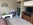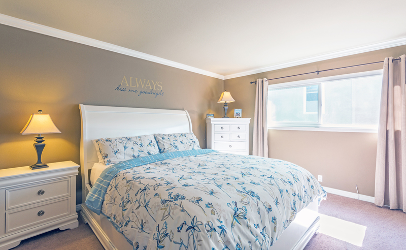 BEDROOM 1: It is furnished with a Cal King Bedroom set, dresser, large wall closet, Alarm clock, Ironing Board/Iron and fan