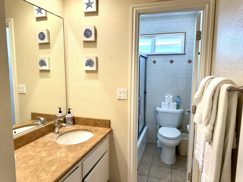 GUEST BATHROOM: Shower/Tub combo with separate room with vanity sink.
