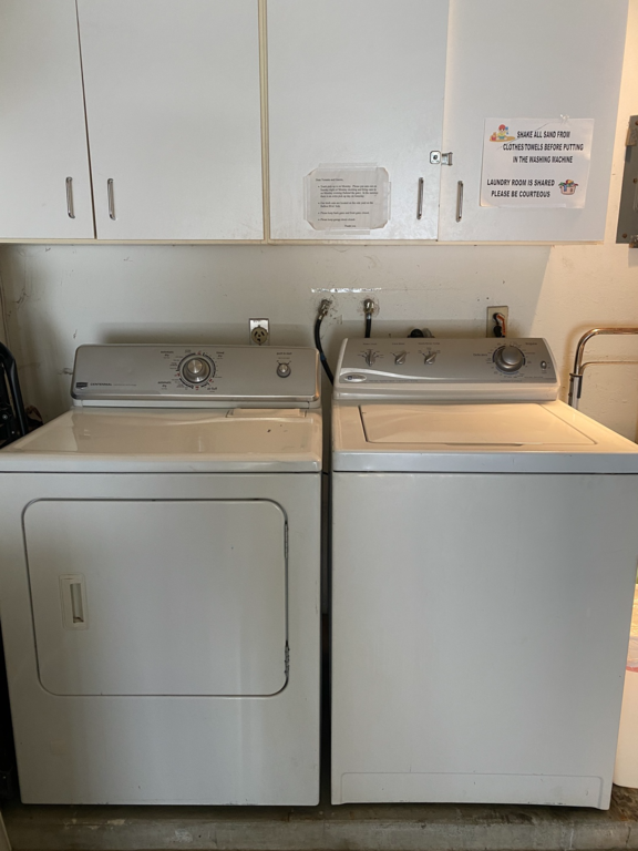 WASHER/DRYER LAUNDRY ROOM: The Laundry room is in the garage and shared with the upstairs guests. There is an Ironing Board / Iron and cleaning supplies.