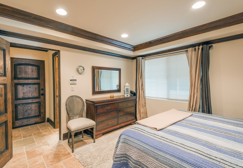 lighting, highlighted with dark chocolate crown molding and baseboards accenting the beautiful travertine tile floors throughout the house. A custom gourmet kitchen that is fully equipped for cooking