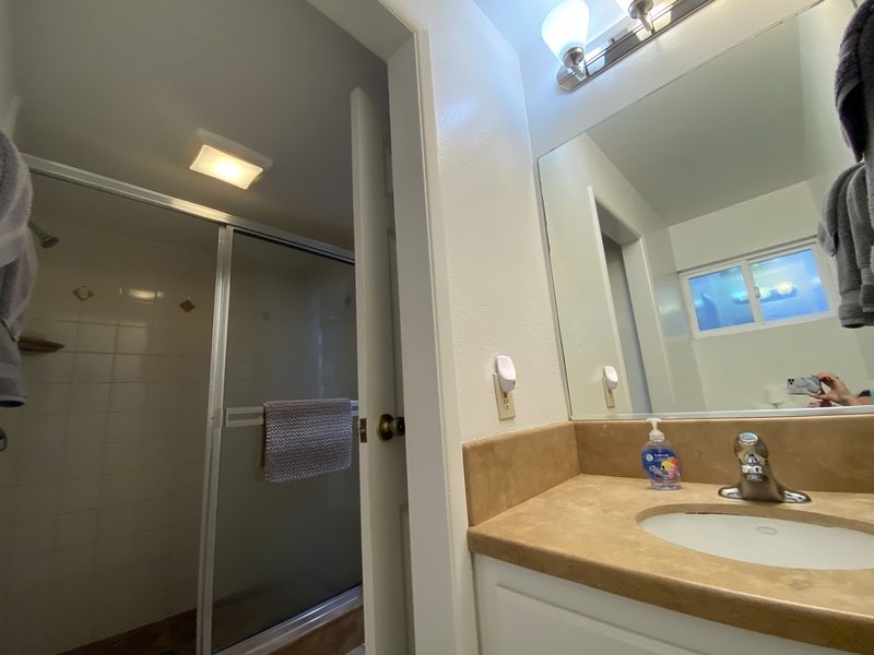 WASHER/DRYER LAUNDRY ROOM: The Laundry room is in the garage and shared with the upstairs guests. There is an Ironing Board / Iron and cleaning supplies.