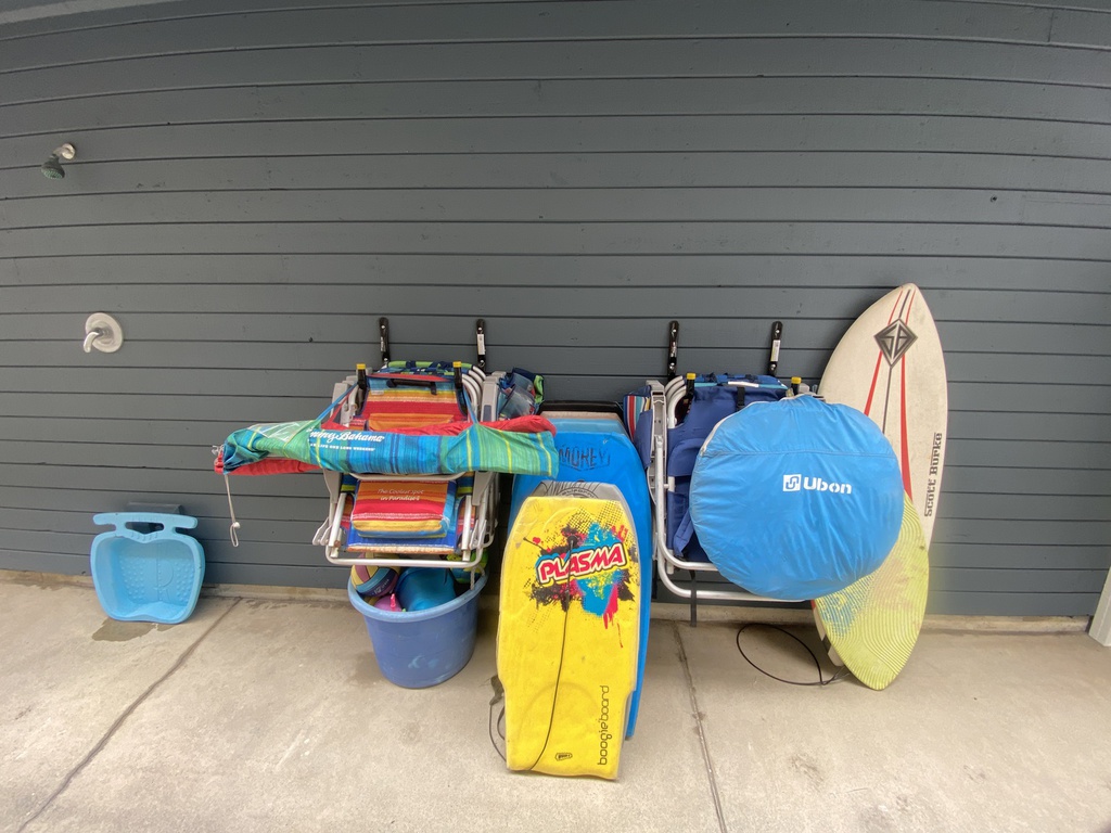 OUTDOOR: 6 person picnic table with umbrella, Propane BBQ with extra propane, 4 boogie boards, assorted beach toys/games, 4 beach chairs, Beach umbrella, a beach wagon and ONLY 4 houses from the beach, 3/4 mile to the Newport Beach Pier