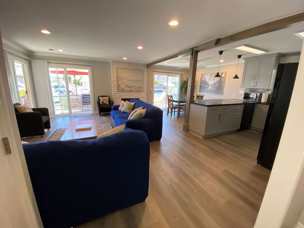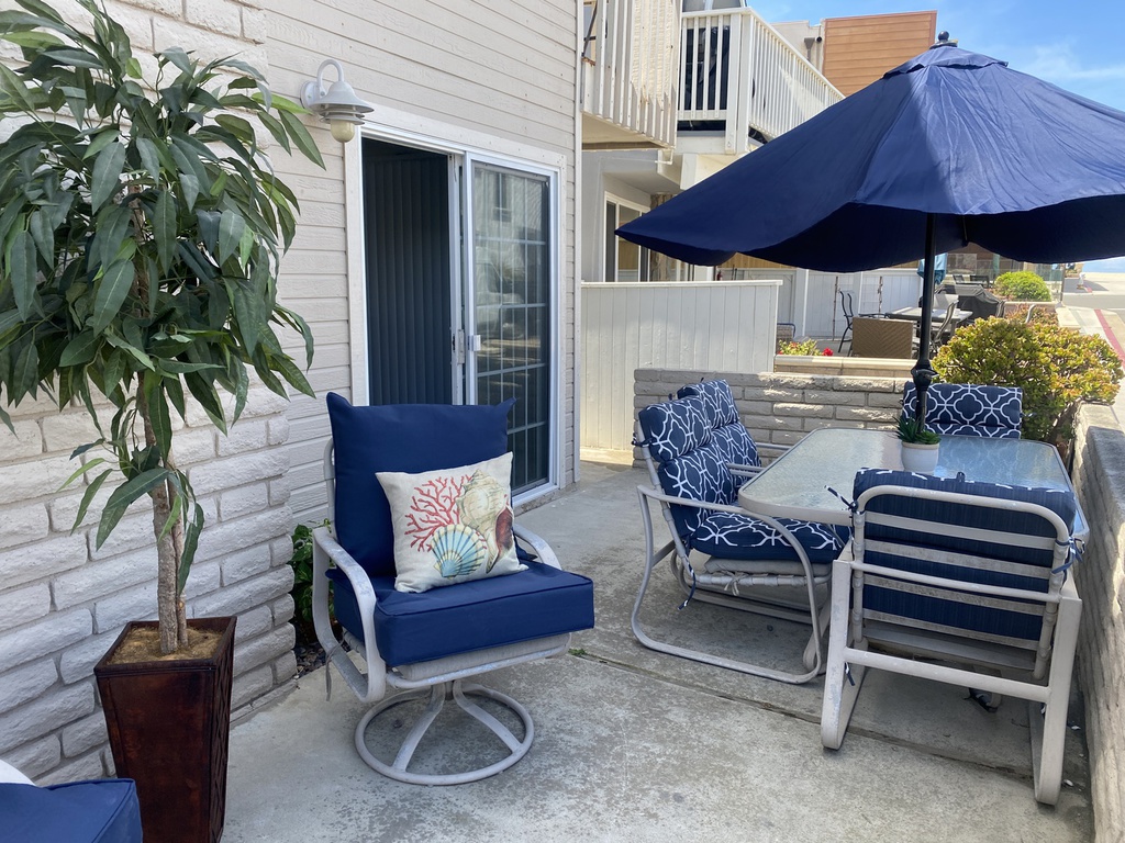 sliding glass doors on each side of the chimney to open the house up to the front patio to enjoy the ocean air.