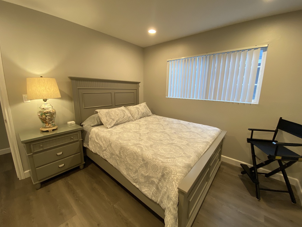 MASTER BEDROOMS AND BATHROOM: It is furnished with a queen bedroom set, large wall closet, Alarm clock and joins with a private master bathroom with a single vanity, and stand up shower.