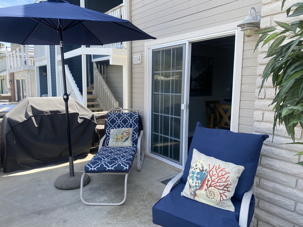 PATIO: Nice size patio that is equipped with a Propane BBQ with extra propane tank, a 6 person patio set with umbrella and 3 lounge chairs for sunning and relaxing